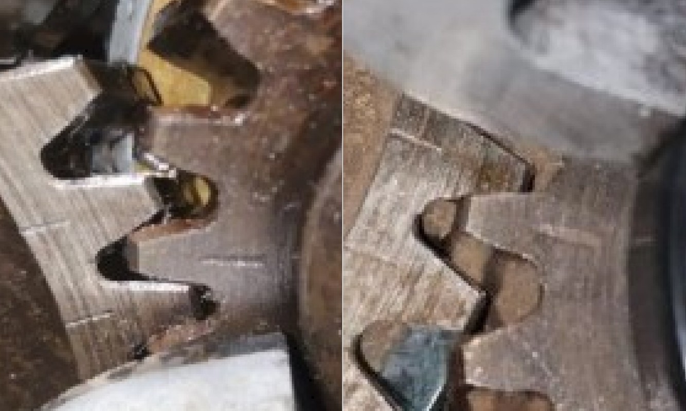 On remarque également d'après les anciennes traces d'usure que c'était déjà le cas avant, la roue Vilebrequin n'étant pas usée sur le bord
