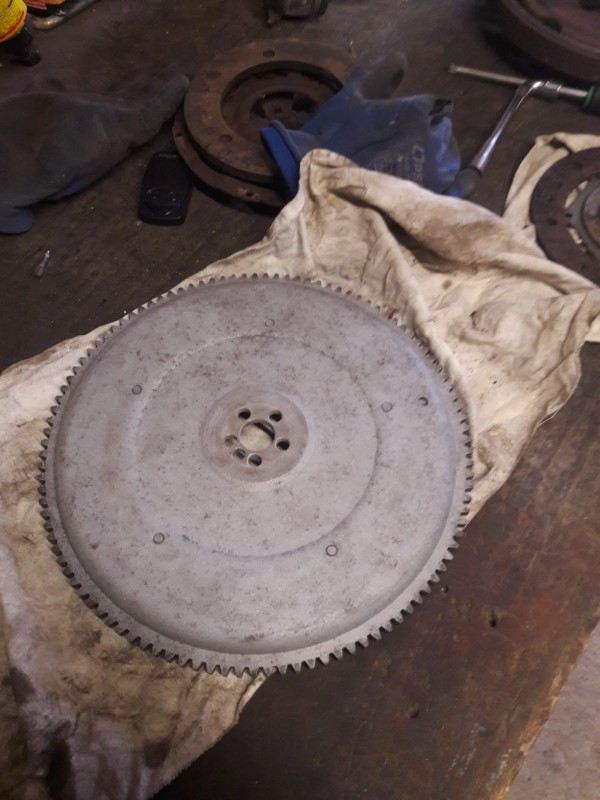 Je suis aussi allé voir mon voisin-copain Patrick pour extraire le roulement de volant d'embrayage. On a un peu galéré pour extraire le jonc, si j'avais mieux lu la revue technique cela aurait été plus facile. Le roulement c'est 10eu chez tous les fournisseurs 2cv, 3eu chez 123 roulement mais 7 eu de port, chez Patrick c'est gratuit, il en avait plusieurs dans ses boites de merveilles, on l'a monté avec le circlip qui va bienc'est pas collector, mais personne n'y verra rien.