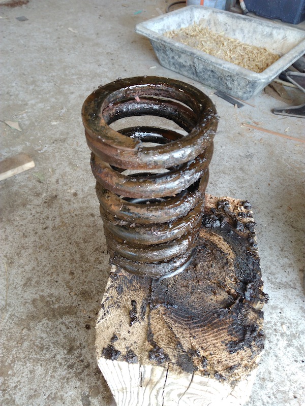:mdr: :lol: A la dynamite!!! Non plus sérieusement j'ai commencé à la meuleuse, et puis pour aller plus vite j'ai disqué. De toutes façons je change les enveloppes, coupelles et garnitures intérieures, seuls les tirants, ressorts et ressorts anti galop sont gardés et restaurés.