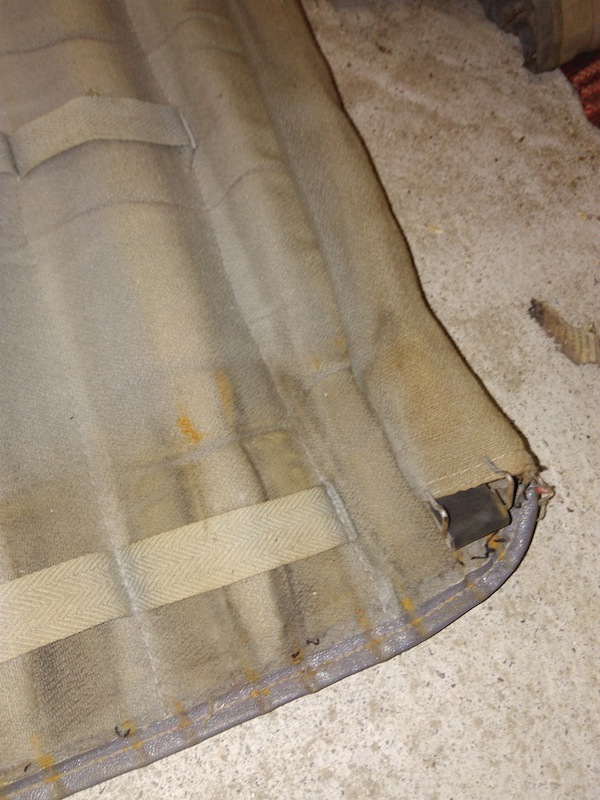 Ce matin, une belle découverte, sous la couverture cousue sur les anciennes garnitures avants, j'ai retrouvé la sellerie d'origine grise des toutes premières (uniquement à l'avant car l'arrière est écossais) ce qui confirme bien l'année 52 de la voiture. Je ne sais pas si je vais les garder, étant donné l'état relativement médiocre des garnitures!: