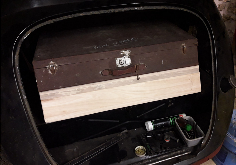 Je viens de récupérer la valise basse fabriqué par un artisan local :france: , comme à l'origine en bois de peuplier , il me reste à l’équipée des serrures et charnières et poignées et de trouver le papier peint pour l'intérieur et le revêtement faux cuir pour l' extérieur sans oublier la restauration de celle du dessus .