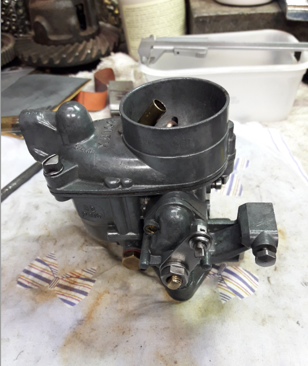 Aujourd'hui j'ai sorti du stock :clap: un beau carbu neuf d'époque 32 Pbic , qui équipe d'origine la Traction , acheté en brocante à une dame qui bradait le bric-à-brac de son ex et réglé rubis sur l’ongle le prix d'un paquet de Roudoudou , (et parti en courant :mdrr: ). Ce carburateur neuf est en monte Simca 3 cv donc reste plus qu'a commander gicleur , automaticité et buse pour le mettre en configuration TA .