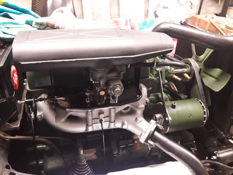 En cette belle journée entrecoupée d’averses , peinture et montage de la boite à air Vokes .