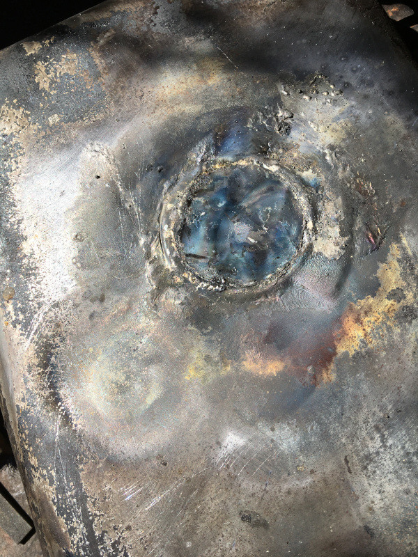Là c'est un sacré défi de souder un pot perforé par la rouille qui a dû aussi affiner l'épaisseur de la tôle, as tu pu inspecter l'état de l'intérieur?