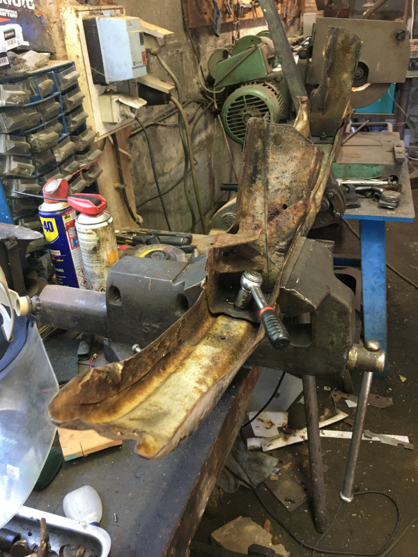 Comme il va pleuvoir la semaine prochaine, je vais pouvoir m'attaquer à la remise en état de ce pare-chocs. Il va même falloir que je ressoude la tôle supérieure, toute rouillée !