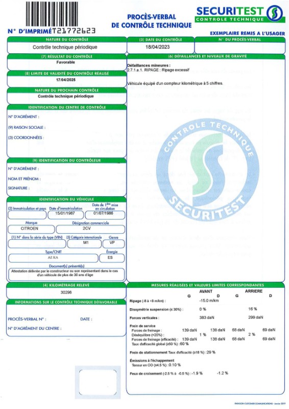 J'ai passé le CT ce matin et voilà le résultat :