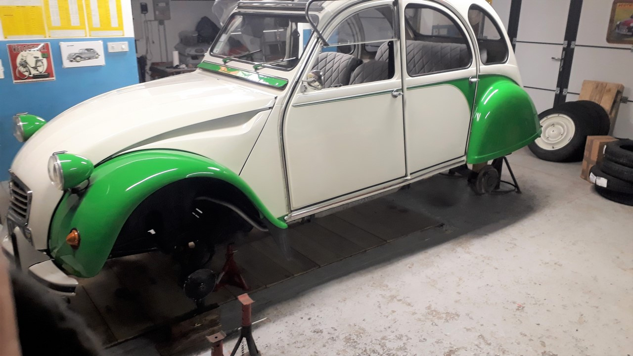 gros nettoyage, freins arrières détalonnage qui n'était pas fait et dépoussièrage, pose d'une moquette, chgt des pneumatiques (en attente du mécano surchargé). La capote, la plage arrière et les plqtts frein devraient arriver aujourd'hui ou lundi. Je vais vidanger et renouveler le LHM, faire la modification du condensateur, vérifier règlage avance + culbuteurs, bougies, etc... etc... des bricoles pour partir + tranquille. Le mois prochain je m'occuperai de la corrosion naissante des passages de roue à l'intérieur. Déjà que j'avais du temps par mon statut de retraité, mais alors là avec le confinement, je vais vraiment faire le tour de la Deuche