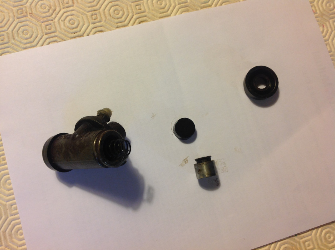 Donc j'ai démonté les pistons en question et j'ai essayé de comprendre ce qui bloquait... En fait c'est assez simple de fonctionnement le liquide de frein envoyé lorsque l'on appuie sur la pédale vient faire ressortir les deux pistons de métal. l'étanchéité est assurée par des caoutchoucs qui empêchent également les deux pistons de sortir complètement. Pour finir il y a un ressort entre les deux pistons. Chez moi les deux pistons étaient bloqués avec de la rouille ou du liquide de frein séché... bref démontage, nettoyage avec de la paille de fer très fine et remontage. Et c'est reparti !