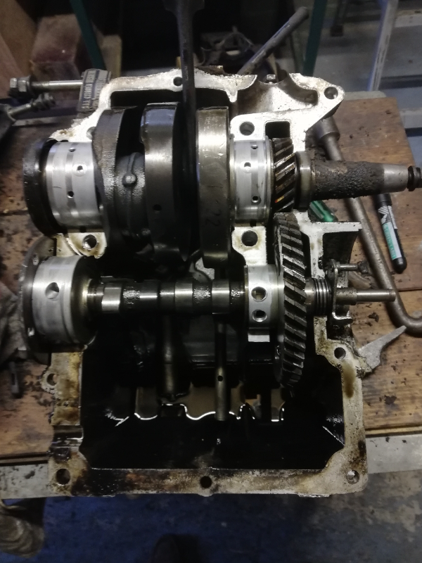 Bon le premier constat : l'embrayage est quasiment neuf ...Question moteur tout est nickel et je suis super content...absolument aucun jeu et les portées des paliers sont parfaites. Ce moteur n'aura besoin que d'un léger entretien+ gros nettoyage. Je vais juste remplacer les joints spi, refaire une étanchéité à la loctite 518...Remplacer les joints lunettes . Côté culasse, je vais refaire la segmentation et remplacer les joints de queues de soupape. Les cylindres et les pistons sont, à première vue, bons pour le service...Ce moteur n'a que 42000 kilomètres je rappelle.