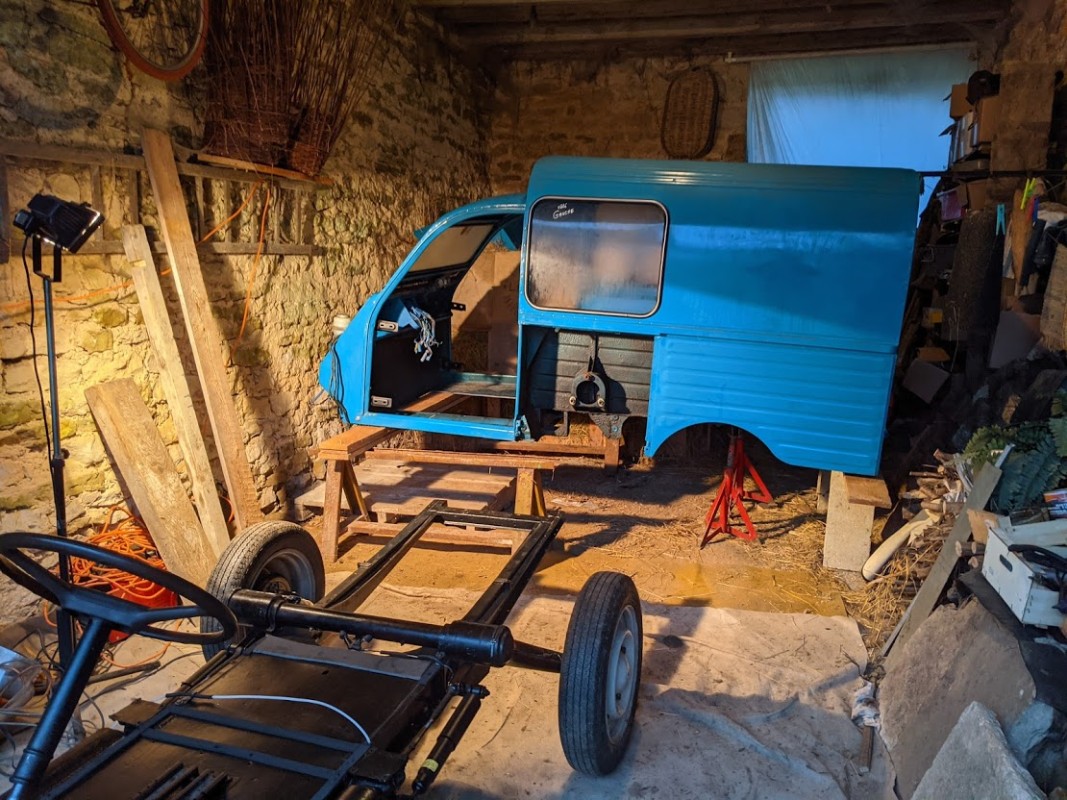 On a un petit peu avancés depuis la dernière fois, la caisse est reposée sur son châssis. ça fait un bien fou !