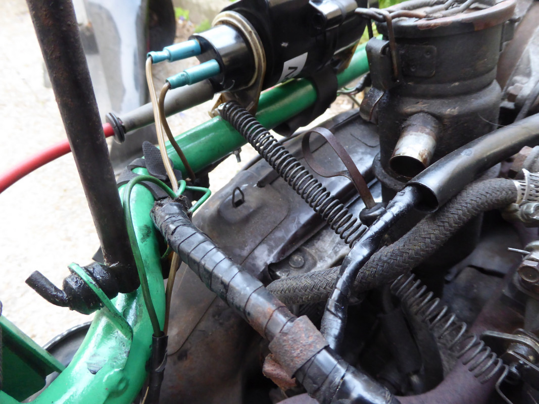 En déplaçant le ressort de rappel de pédale ça fait qu'il reste tout le temps au dessus du point de pivot du papillon, du coup ça ne se coince plus.