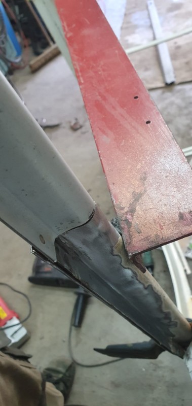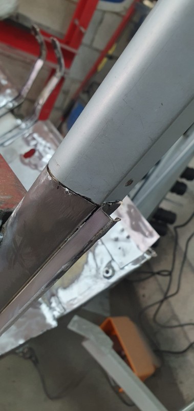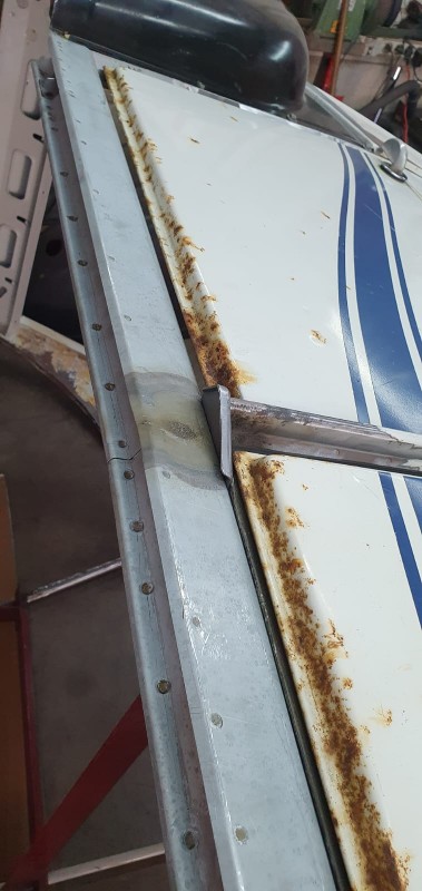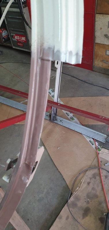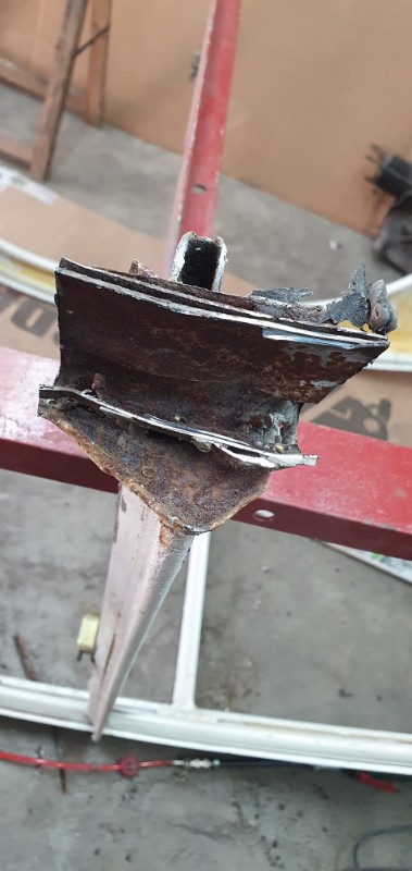 Devant, le pieds A a été également 'rabouté' et le profil de gouttière changé par une version conforme (pas si facile à trouver : bonne largeur d'appuis sur caisse et bonne profondeur) : reste à le tronconner à la forme du bas de caisse :
