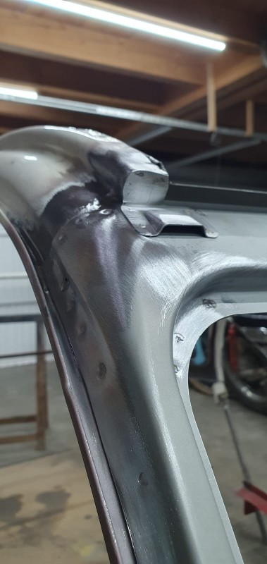 Non pas d'étamage : Tout celà reçoit une couche d'apprêt soudable, puis c'est soudure par point presque partout, et quelques touches de MIG quand nécessaire...