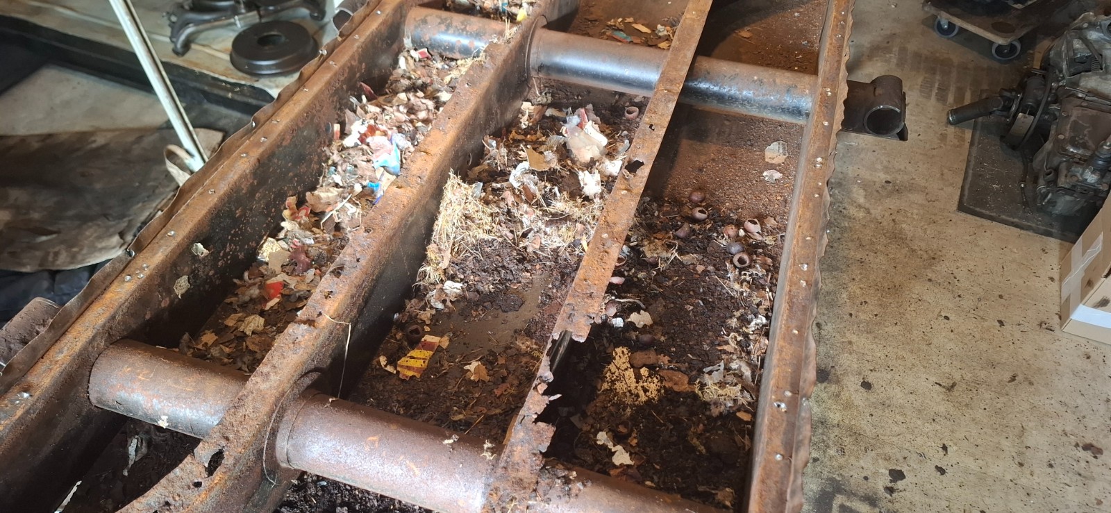 Par contre, c'est bien rouillé dedans aussi... il devait y avoir un colonie de rongeurs car il y avait foison de confettis de prospectus