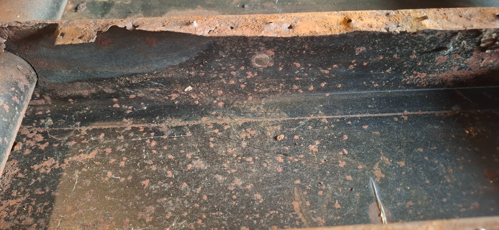Voilà voilà... c'est pas joli mais les montants des renforts interieurs sont absents de rouille performantes... seulement la presque totalité des cornières interieures soudées à la tôle inférieure est mort... les cornières supérieure sont nickels....