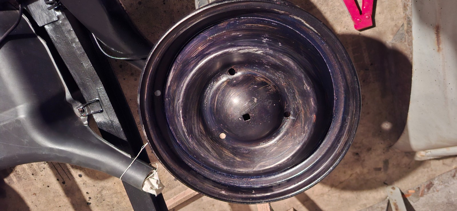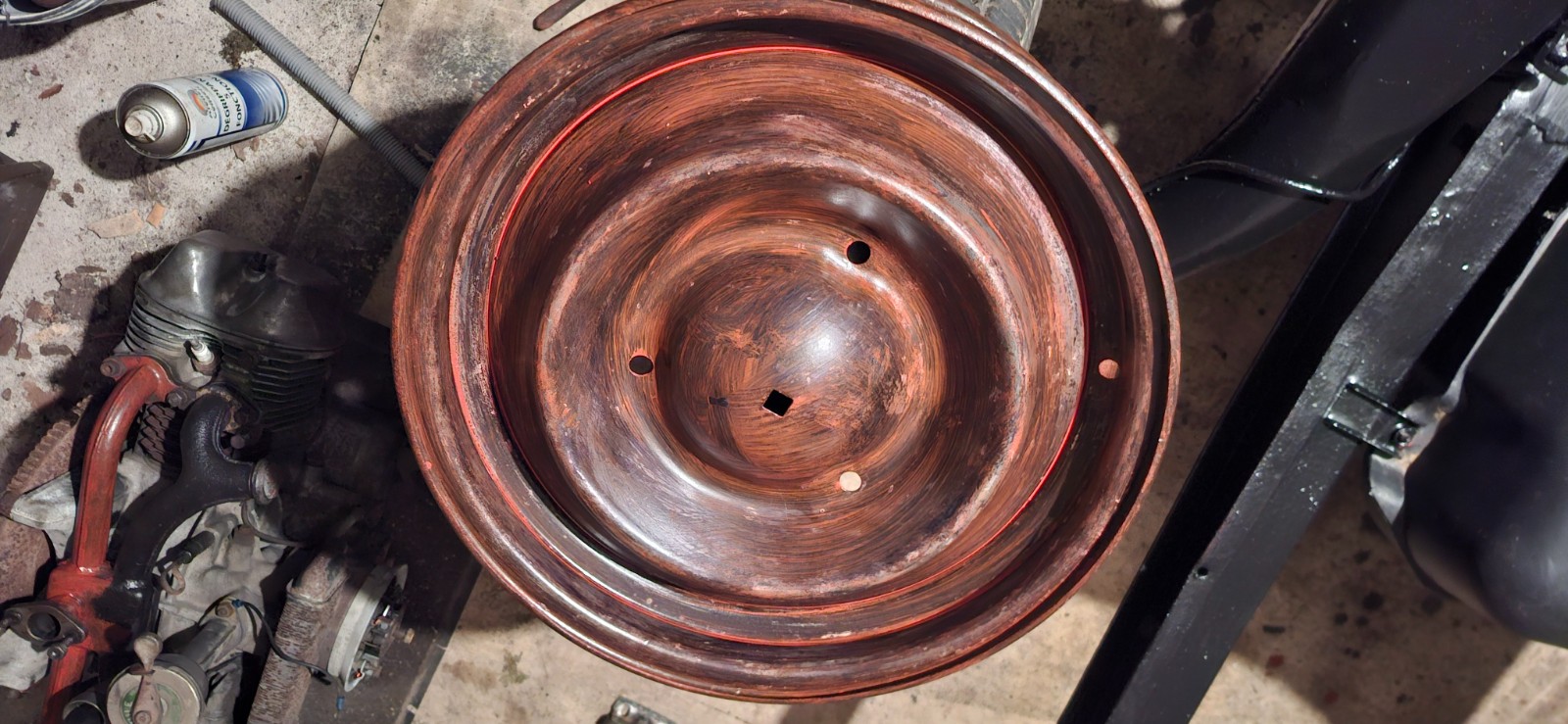 Et pendant ce temps, je m'attaque aux jantes... 3 tubeless et 1 jante avec chambre à air... complément rouillée... j'ai galéré pour déjanter