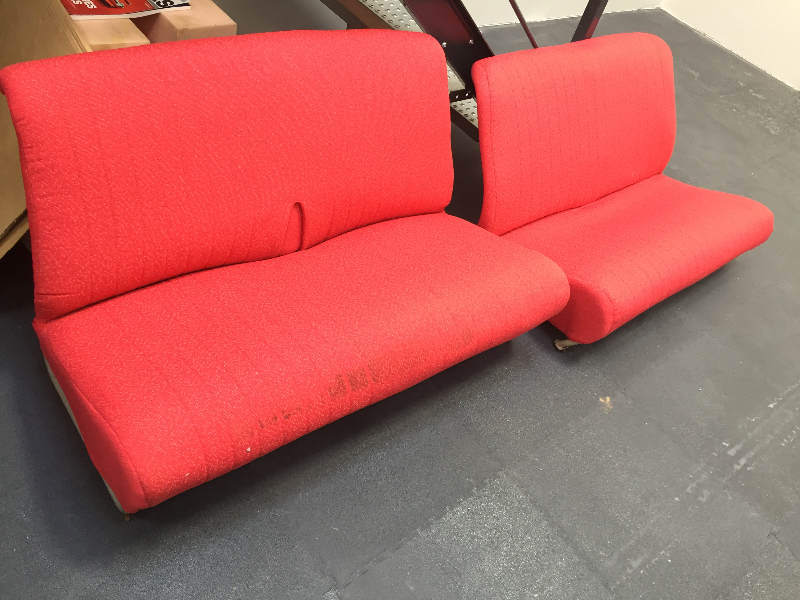 Un étape supplémentaire dans un tout autre domaine que la carrosserie, et un métier complètement différent et bcp plus proche de mon activité professionnelle. Voilà les banquettes refaites à neuf (caoutchouc, feutrines, coiffes avec le tissu rouge diamenté, et hamac).