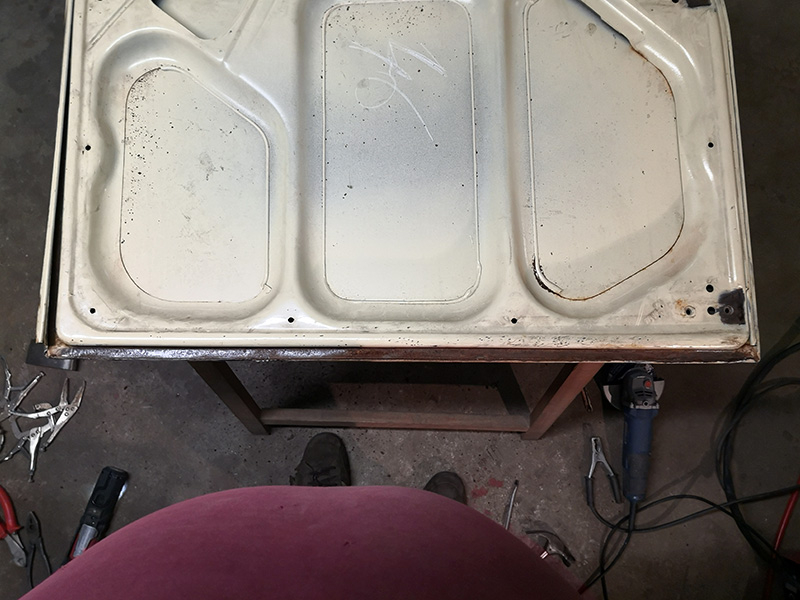 J'ai tout d'abord réparer la porte avant gauche, où je profil support pour le joint était complètement bouffé par la rouille.