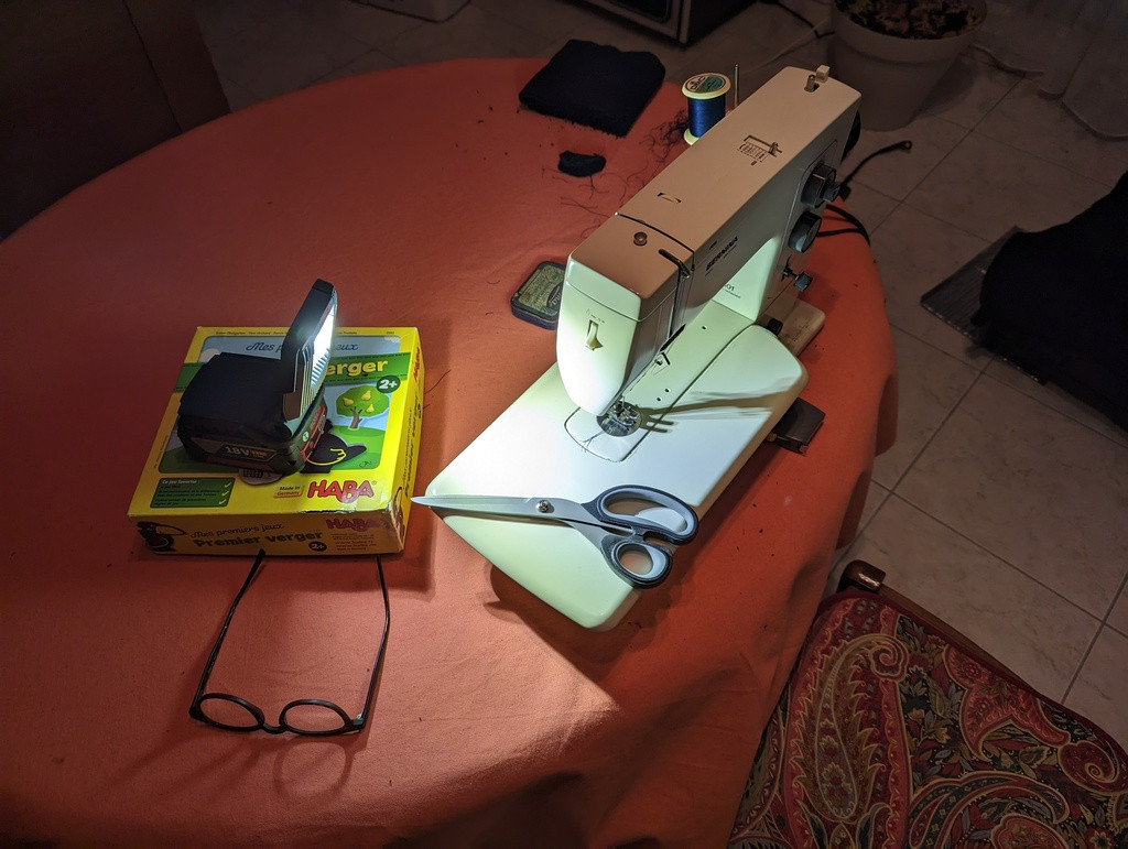 Ensuite, tel le travailleur clandestin, c'est parti pour de la couture à la lampe d'atelier.