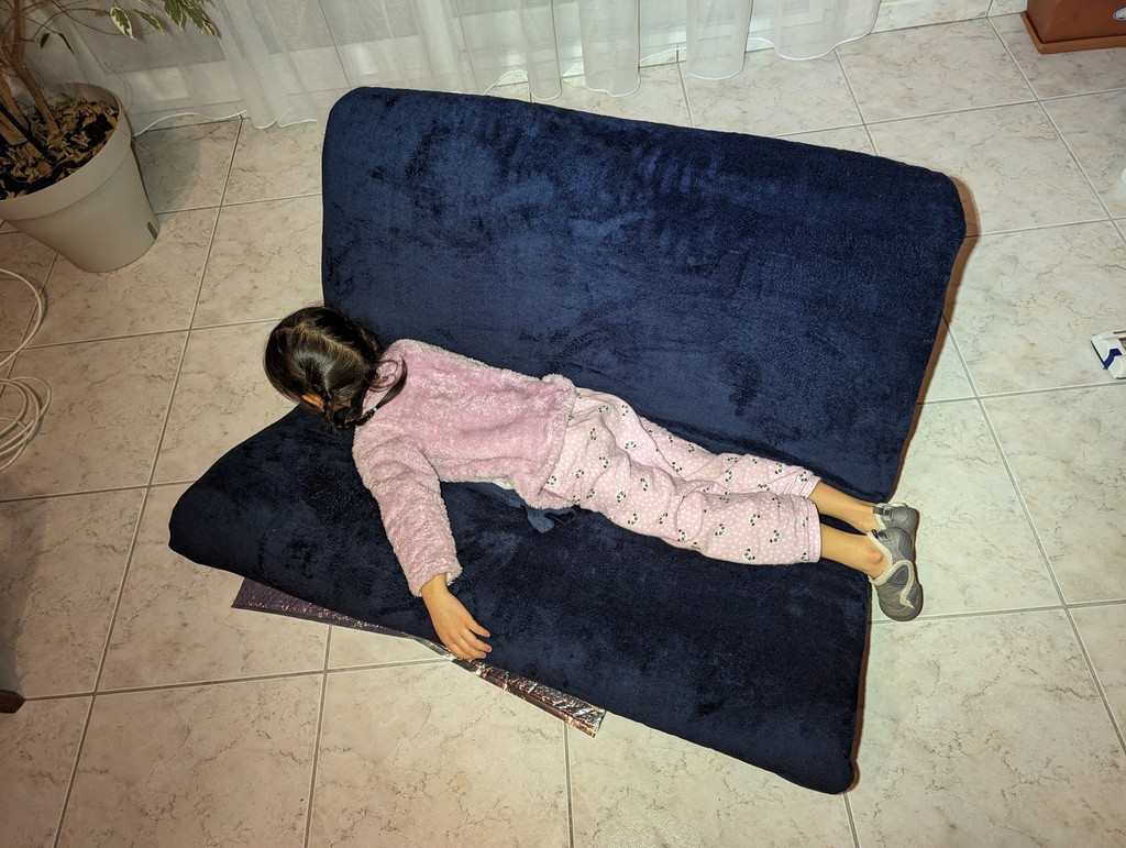 J'ai acheté 4 mètres linéaires de tissu type « éponge » bleu foncé.
