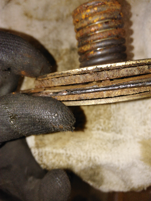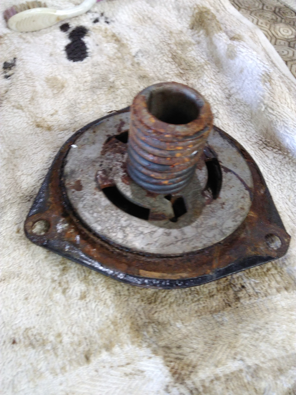 Après quelques semaines sur un autre projet ( d'ailleurs j'en profite pour dire que je vais refaire avec un ami le moteur de la jaune Panama ( il fume et fait de l'huile) et changer pivots roulements ( elle tremble à 50 kmh), je ferai donc quelques photos que je publierai), bref j'ai repris quelques travaux sur la A, dont l'extraction du Brad avant droit pour retirer le pivot à la presse. Étonnamment il est venu sans souci.