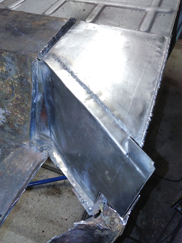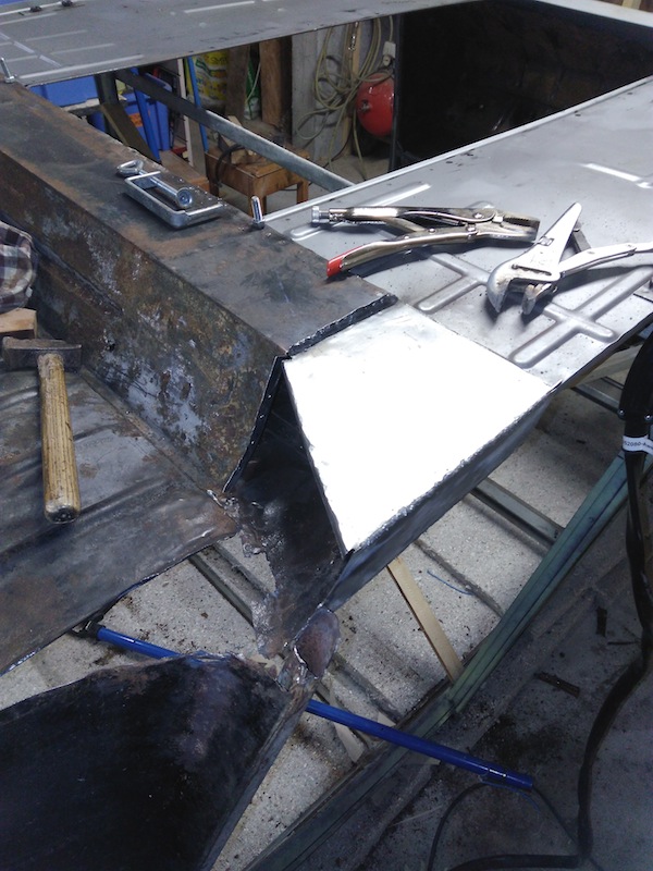 Oui je n'ai pas mis de barres pour la soutenir parce que j'ai repéré et mesuré toutes les cotes afin de ressouder en remettant bien ces côtes là. Pourquoi, c'est indispensable de maintenir la rigidité de la caisse??