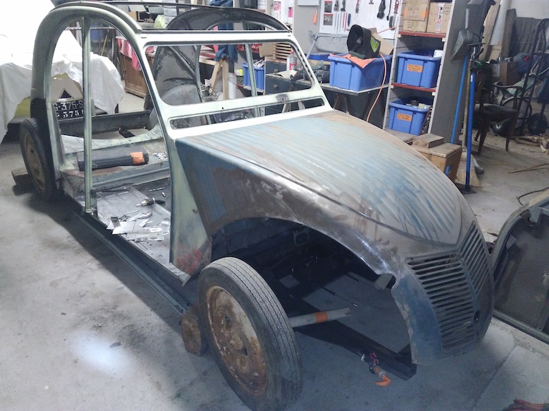 Pour ce qui est de la restauration, je me suis donc attaqué aux pièces rouillées, et il y en a un paquet. Remarquez depuis 1952 elle en a vu passer la 2cv!