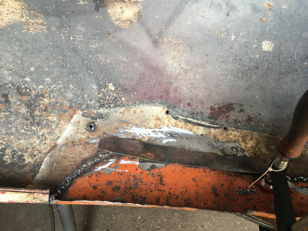 Après réflexion, je pense que je vais meuler toutes ces horreurs (la tôle de réparation ne jouxte pas bien les bords découpés de l'aile) et je ferai les finitions à l'étain.