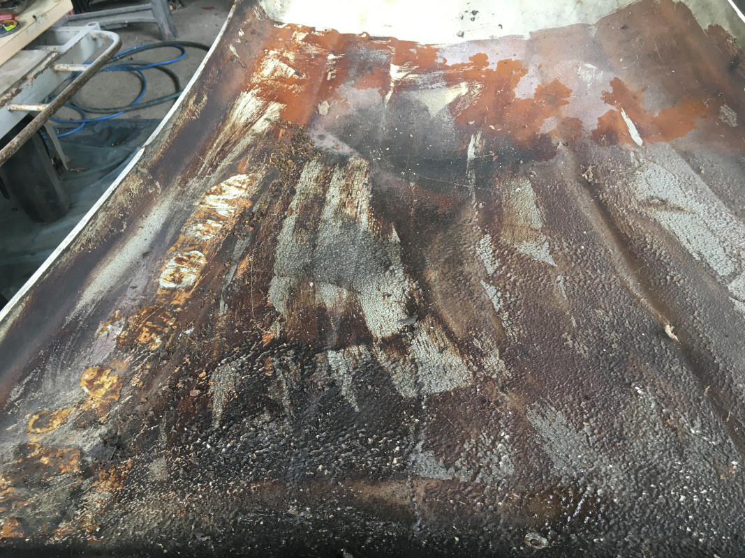 Donc, je devrai m'y attaquer à la brosse métallique, puis à la cale à poncer avant de passer du FEROSE, puis de l'apprêt époxy, avant la peinture de finition AC 136...