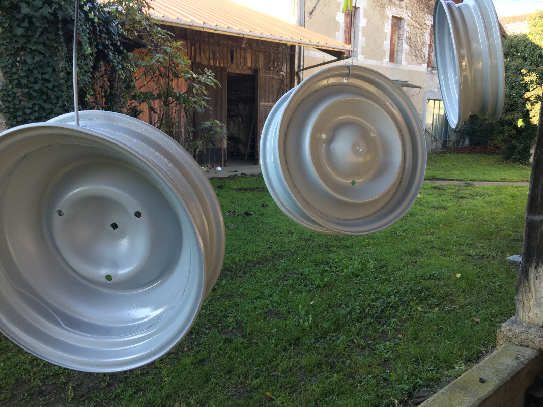Une fois l'expérience passée, j'ai pendu les jantes afin de pouvoir les apprêter :