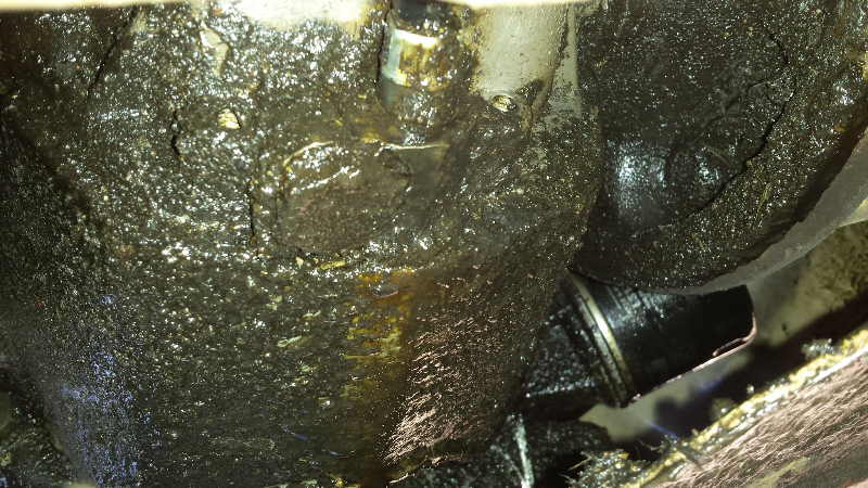 Et je crois que j'ai non seulement une fuite d'huile moteur, mais aussi une fuite de boite et pas forcément à cet endroit, car il y a une grosse coulée sur le pot de détente, et de toutes façons, en moins d'un an, elle s'est vidée de moitié.