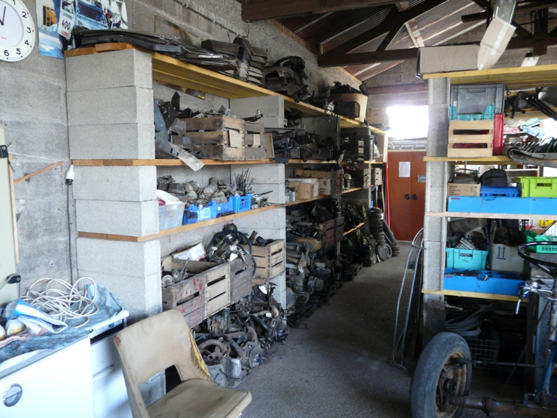 Dans ce local, de nombreuses pièces d'occasion, car on nous donne ou on achète des lots de pièces, voire des épaves à démonter. Le local est ouvert tous les samedis et on s'y retrouve une quinzaine chaque semaine. Il y a aussi un lot de pièces d'usures neuves. Et on fait des commandes groupées de pièces pour les adhérents.