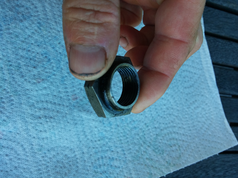 Normalement cet écrou (pas a gauche) est arrêté comme un écrou de tambour arrière on ne vois pas de trace sur ton écrou .