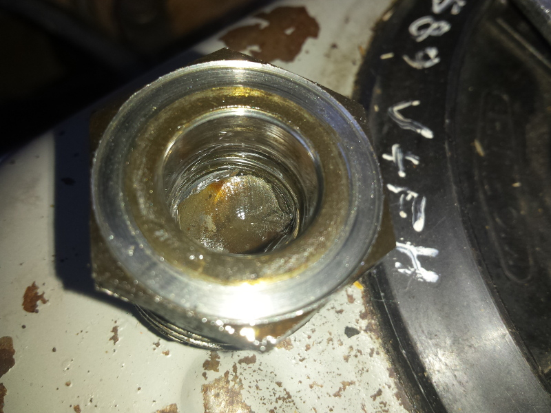 Je ne sais pas s'il reste assez de filetage pour visser un écrou neuf, mais je vais tenter le coup. J'en ai commandé un. Et je le souderai par dessus... :hehe: