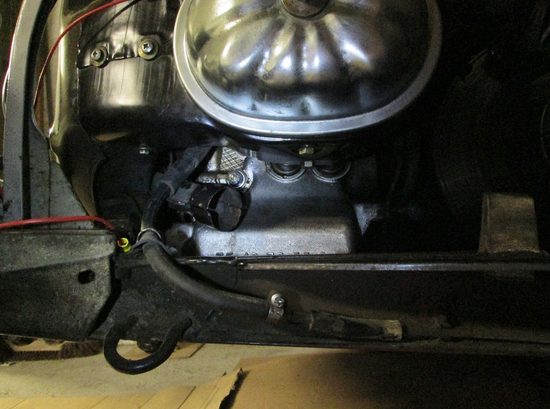 Photo 1 : taquet avant côté roue av gauche (visible tout à droite de la photo) sans l'aile. [[[oui, je sais, le filtre à essence n'est pas dans le passage d'aile, pas taper, pas taper, c'est mon choix :ignorant: ]]]