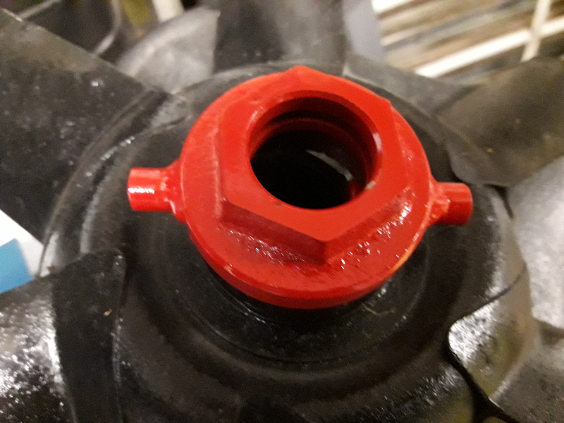 Un outil pour démonter l'hélice fait avec l'écrou d'un piston de cric hors d'usage