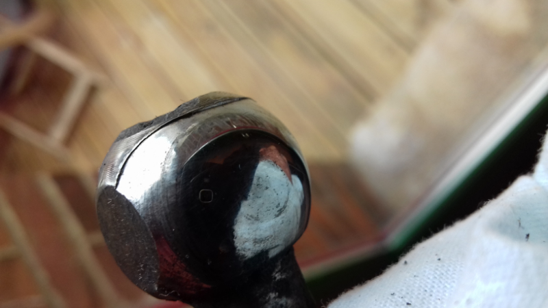 En pleine réfection de mon AK400 je suis sur le train avant et je me suis aperçu que mes barres de direction n'avaient pas de soufflet au niveau des leviers de direction et donc pas un pet de graisse sur les rotules , les 2 rotules sont marquées ( épaulement ) plus prononcé coté conducteur .