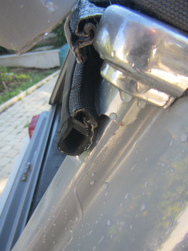 J'ai résolu le problème en posant un profilé caoutchouc qui se pince sur la gouttière, le bourrelet souple assure l’étanchéité avec la porte de malle, ça force un peu en la fermant.