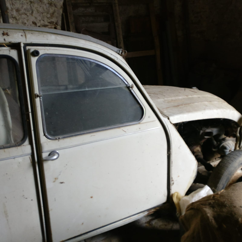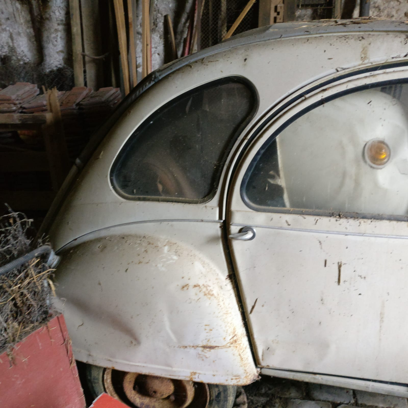 Une grande partie de mon entourage, jusqu'au PDG de ma boite (une petite boite géniale où tout le monde se connait, mais ce n'est pas l'endroit pour en parler) connait ma passion pour cette créature à 4 roues et sait que, "le jour où j'aurais le temps, la place, et l'argent, je me referai une 2CV". Je n'ai pas forcément la place, quant au temps et l'argent, il y a toujours moyen de s'en arranger. C'est ainsi qu'il y a quelque semaines, un de mes collègues m'envoie un message sur Whatsapp et me parle de la 2CV qui est chez sa grand-mère, à moins d'une demi-heure de chez moi. Message accompagné des quelques photos ci-dessous.