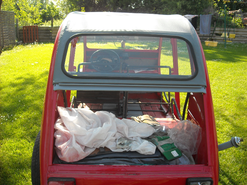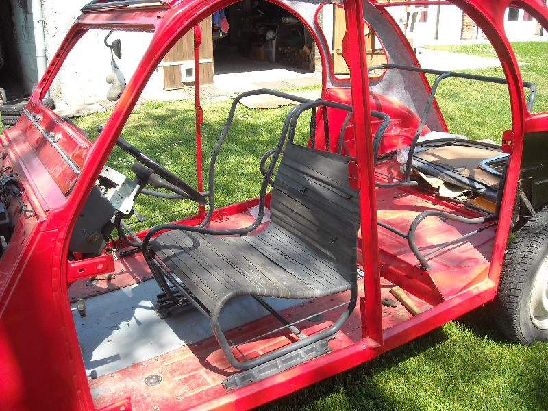 bonjour a tous , j'espere que vous allez bien et que ce confinement ne vous pese pas trop .pour ma ma part , je suis dans un petit village avec beaucoup d'espace donc je ne me plaint pas .j'en profite pour bosser sur ma deuch . je remonte tranquillement .aujourdhui j'ai installé la capote ,je balisai un poil car certains ont eu des problemes si j'ai souvenir . j'ai bricoler une assise de siege en attendant mes garnitures . j'ai fait avec une chambre a air de tracteur mais j'ai galéré pour tendre tout ca .enfin on s'occupe .queques images. a bien + .