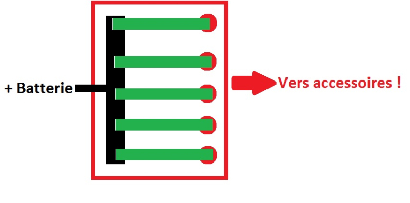1- si j'ai bien compris le distributeur remplace alors ma boite de fusibles actuelle, c'est à dire celle ou j'avais branché les accessoires que j'ai ajoutés dans la deuche ( allume-cigare, autoradio...etc )? je vous met un dessins de l'installation actuelle