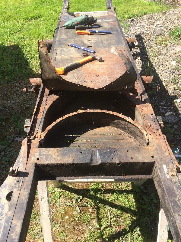 je vois que tu avance bien, elle à l'air complète avec une rouille de surface, sauf pour le châssis qu'il faudra changer.