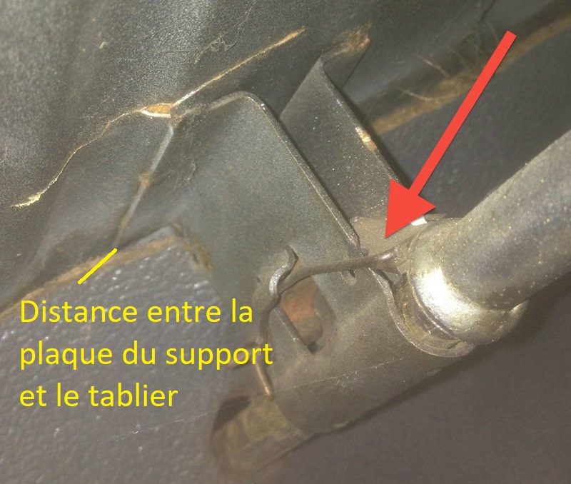 Et oui, pendant la rénovation, le support a été conservé mais la tablette a été changé. Du coup, quel est son emplacement? A vrai dire, dans l'axe, ça va, mais au final, à quelle distance du tablier? Je n'ai aucun repère !