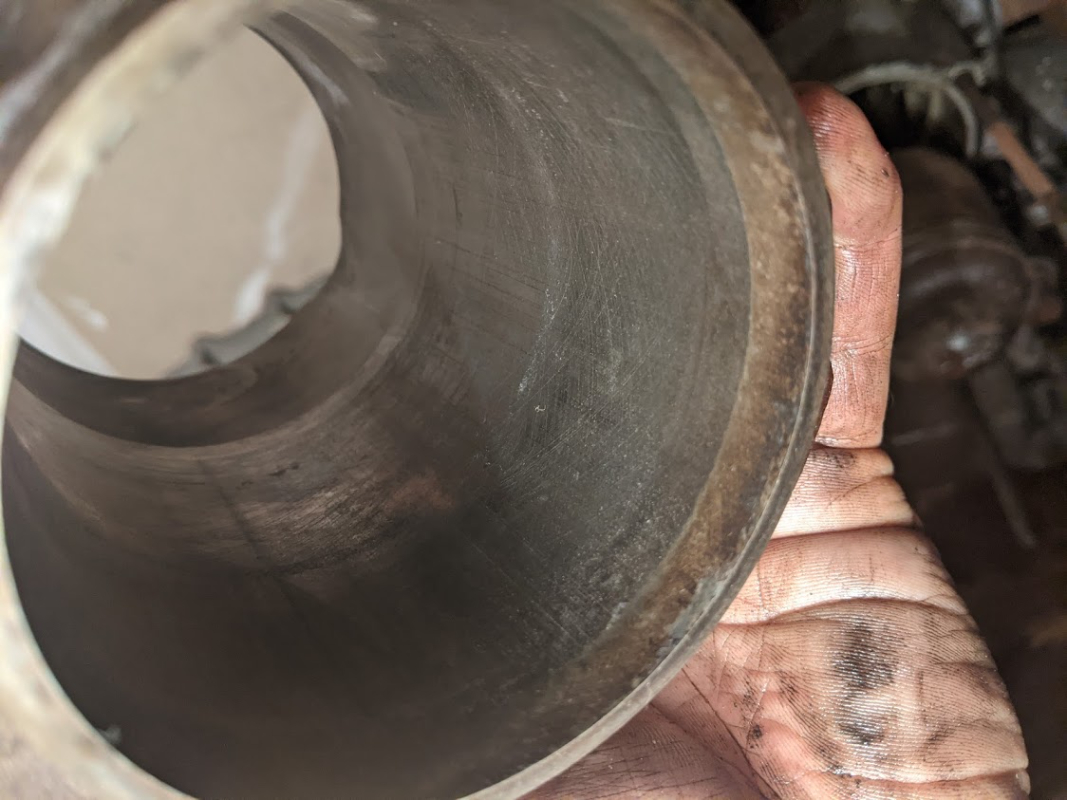 de plus ils ne sont vraiment pas trop usés hormis ça, les marques de honnoir d'usine sont encore bien présentes, les pistons intactes, pas de marche au niveau de là où s'arrête la tête de piston, et les segments avaient un jeu à la coupe à peine hors cote. ça n'a pas dû trop tourner !