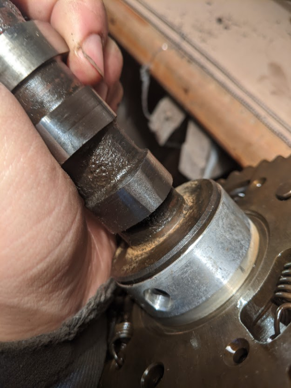 (les paliers et coussinets ne sont pas marqués, juste un peu sales) Comme on peut le voir sur la dernière photo, les cames sont tout de même un peu usées sur leur pointe. Un amis qui travaille sur les 2 pattes depuis des années m'a dis que ça pouvais tout de même repartir sans problèmes, ouf !