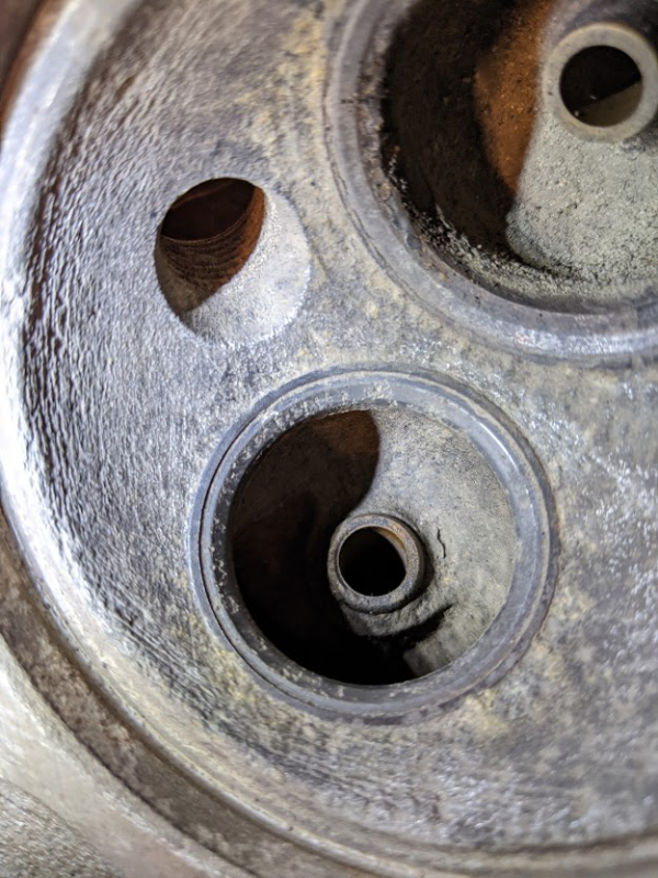 Voilà d'abord la moins abimée : En soit les sièges doivent rectifiables, mais la chambre de combustion à l'air d'avoir perdu de la matière. Toute la chambre devrait être comme au niveau du morceau qui reste sur la gauche non ?