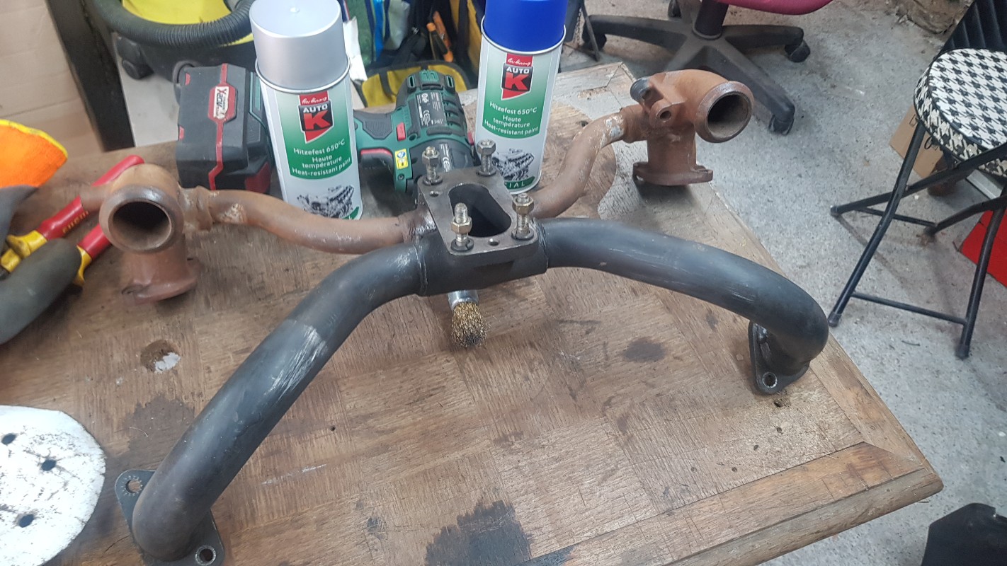 En ce qui concerne la pipe admission-échappement, l'"araignée" quoi ! d'origine seule la partie admission est peinte.