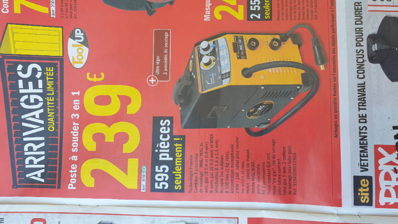Personnellement, je me méfie toujours des produits "combinés" . Ensuite tout dépend ce que l'on veut en faire, et à ce prix, il ne faut pas être trop exigeant sur les performances de ce type d'appareil...par exemple, une bobine de 100 mm cela me semble un peu short, en no gaz, tu soudes que du fil 0.9 , ce qui peut être un peu trop épais pour la tôle des deudeuches...comme les électrodes maxi 2,5, qui ne permettront pas de souder des aciers épais...Encore une fois, tout dépend l'utilisation à venir, et il vaut mieux consulter les avis sur le net, si tu en trouves...