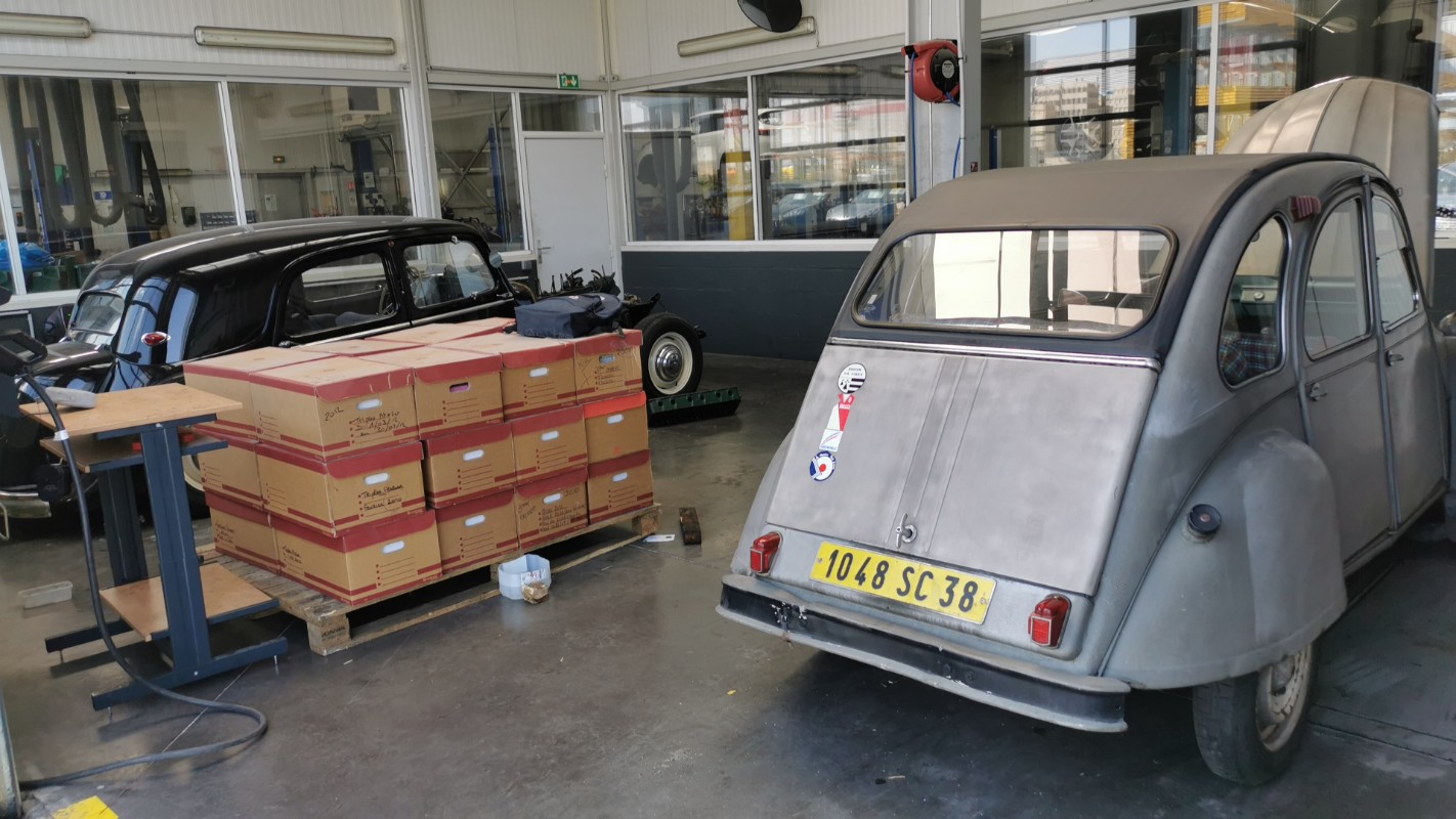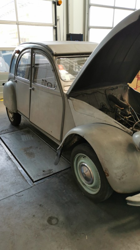 La 2cv est la au garage ou je travaille.
