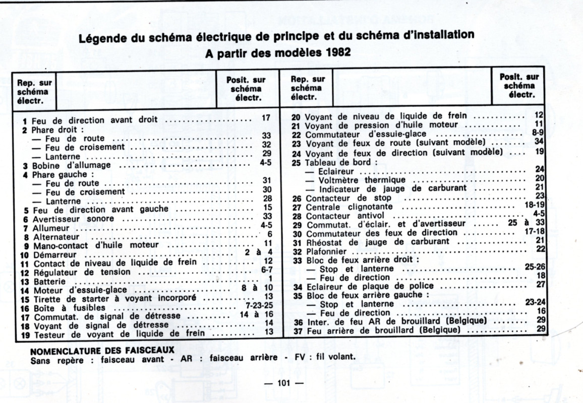 Voici le schéma électrique de la 2CV6, avec la nomenclature.